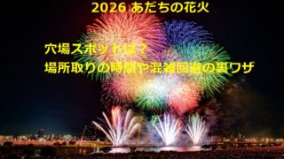 イベント 足立の花火2026穴場スポットは?場所取りの時間や混雑回避、中止基準も紹介! 足立の花火2026を100%楽しむための完全ガイド!完売した有料席に代わる高層レストランや、地元民が教える穴場スポット7選を詳しく解説します。失敗しない場所取りの時間、帰りの大混雑を回避する裏ワザ、気になる中止基準の確認方法まで。この記事を読んで、最高の夏の思い出を作りましょう! 2026.04.29 イベント