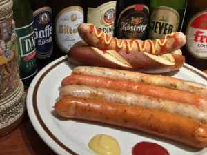 ツリーオーナメントやホットワイン、ソーセージなどの本格的なドイツ料理